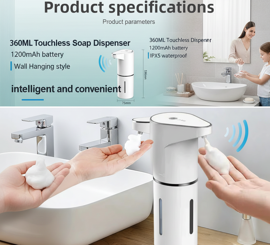 The built-in infrared sensor detects your hand and automatically releases the perfect amount of foam — completely touchless and hygienic.